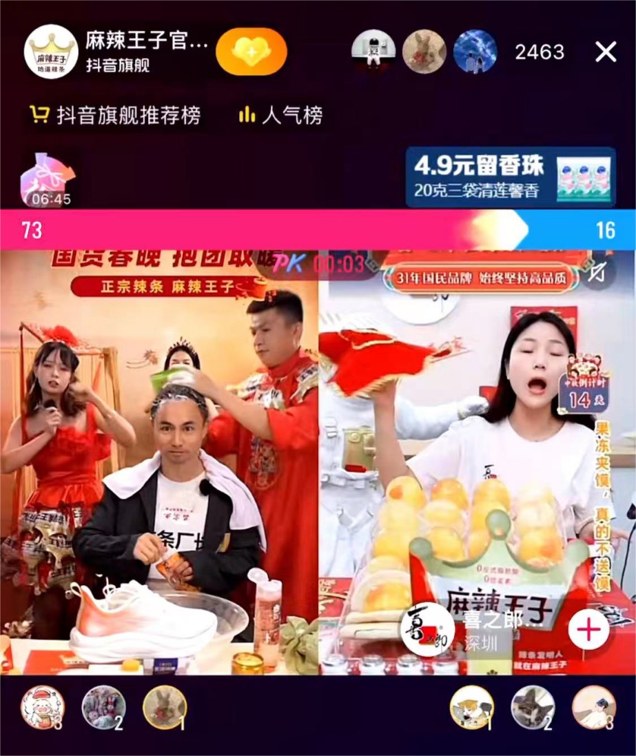 其次,通過(guò)短視頻+直播等風(fēng)口渠道將品牌“正宗健康”的形象推廣到全國(guó)。比如說(shuō),在麻辣王子的直播間,廠(chǎng)長(zhǎng)用蜂花洗發(fā)水洗頭等國(guó)貨“聯(lián)動(dòng)”玩法為麻辣王子吸引了不少關(guān)注,很多人通過(guò)直播發(fā)現(xiàn),麻辣王子不僅代表了正宗麻辣味辣條的味道,還是一個(gè)這么年輕愛(ài)玩、有趣有料的品牌。