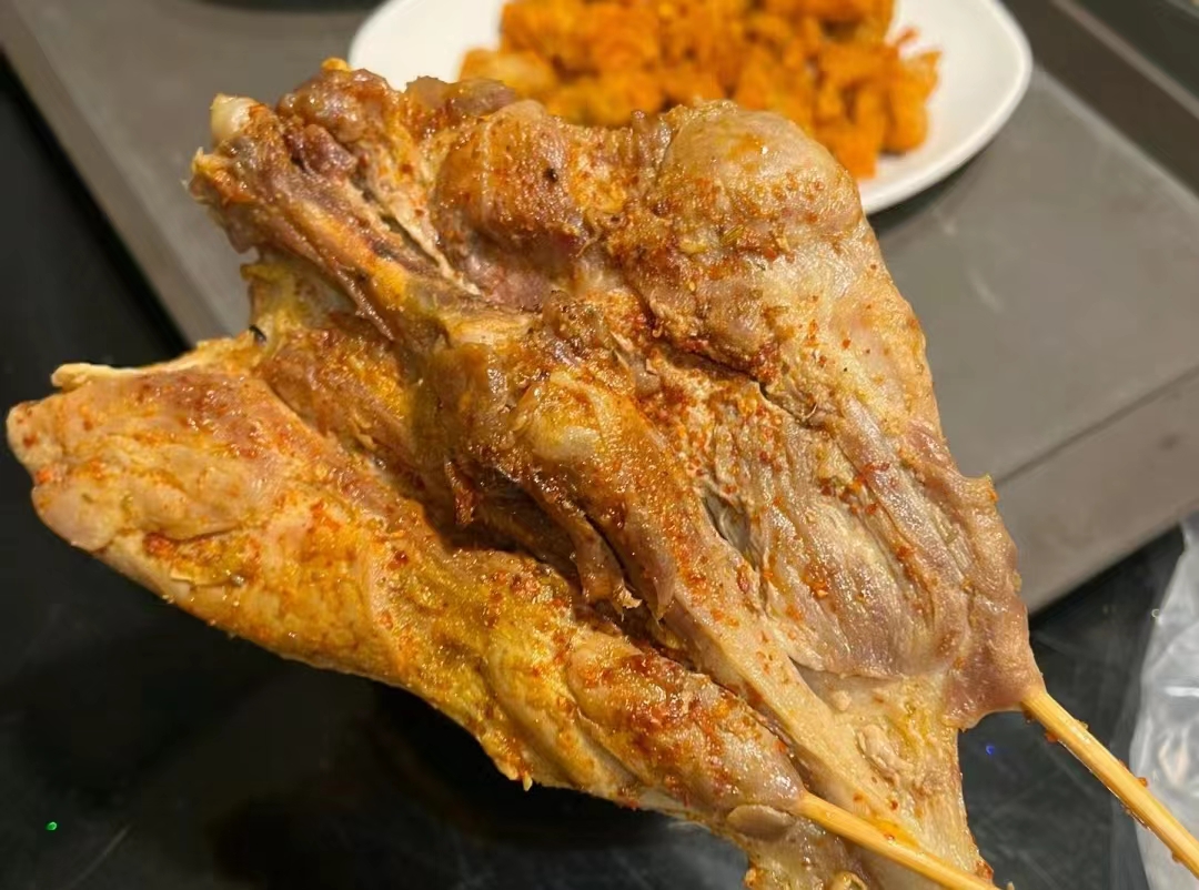 鵝腿阿姨在接受新民周刊采訪(fǎng)時(shí)也表示,烤鵝腿的口味是夫妻二人自己琢磨出來(lái)的,目前有辣和不辣兩種口味。鵝腿的沖洗、切配、腌制和烤制,也都是自己親力親為,每天早上6點(diǎn)多就會(huì)起床準(zhǔn)備食材,確保產(chǎn)品足夠新鮮。