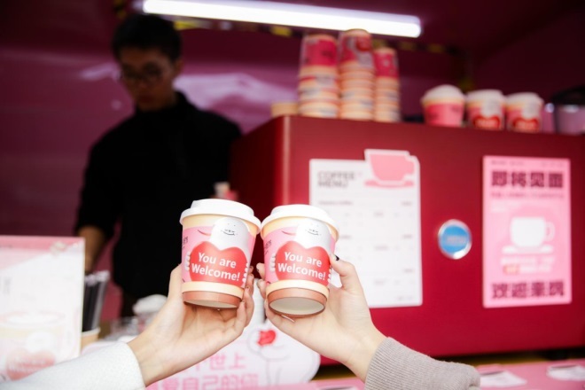 合景泰富成都交子商業(yè)集群作為合景泰富集團(tuán)的城市標(biāo)桿項(xiàng)目之一,此次「超級(jí)合粉節(jié)」聯(lián)合「有趣人類咖啡」以POP-UP形式落地成都,串聯(lián)悠方&摩方兩項(xiàng)目,借助品牌、IP異地實(shí)現(xiàn)破圈!赣腥と祟惪Х取棺鳛楸背角嗄昶煜碌目Х绕放疲浔Пё蠭P給人溫暖、舒適的形象,此次「超級(jí)合粉節(jié)」透過(guò)抱抱仔IP溫暖的形象與年輕人溝通,將氛圍感拉滿,緩釋年輕人的「不配得感」,釋放品牌持續(xù)與年輕人對(duì)話的信號(hào)。