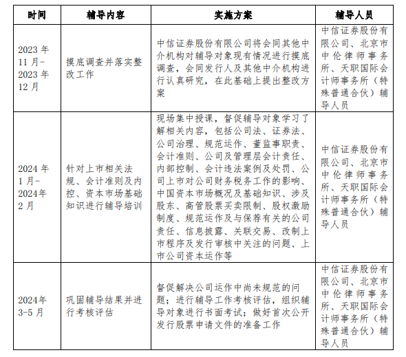 根據(jù)備案報(bào)告,中信證券與萬香科技于2023年11月9日簽署輔導(dǎo)協(xié)議,輔導(dǎo)期為2023年11月至2024年5月。
