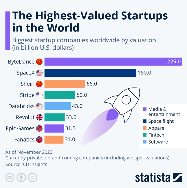 不久之前,抖音集團(tuán)還以2250億美元估值位居全球獨(dú)角獸排行榜榜首,遠(yuǎn)超估值1500億美元位列第二的SpaceX,成為全球最大獨(dú)角獸公司。