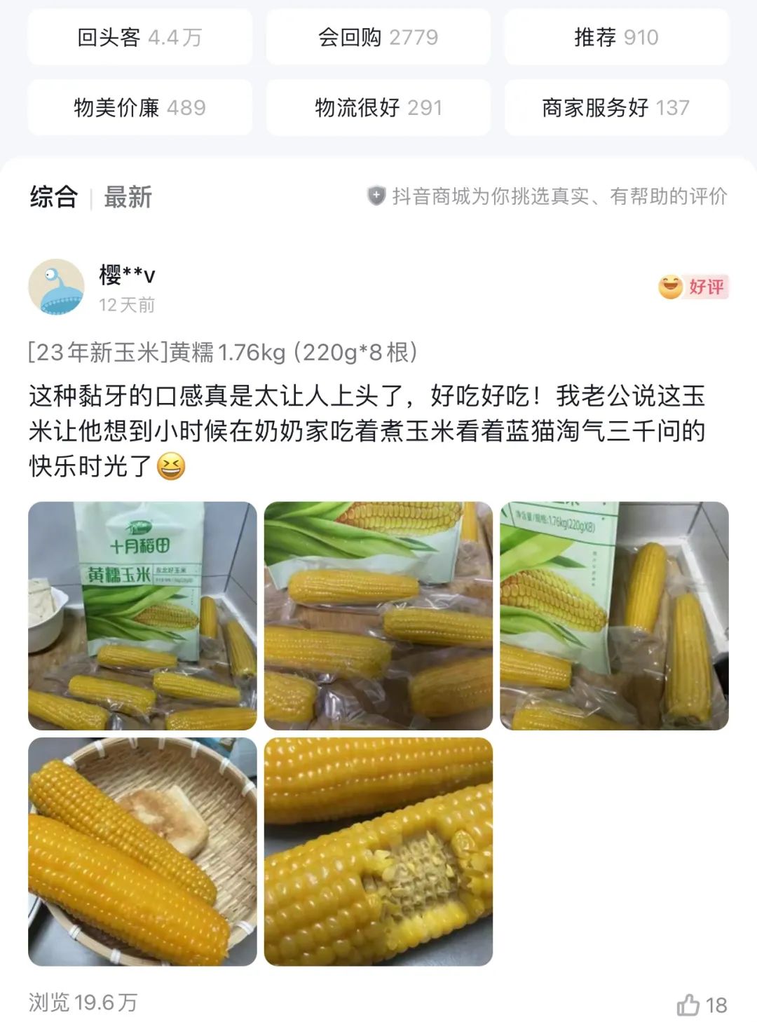 在熱銷產(chǎn)品“十月稻田黃糯玉米棒”的評(píng)論區(qū)里,一位消費(fèi)者留下評(píng)論,“我老公說(shuō),這玉米讓他想到小時(shí)候在奶奶家吃著煮玉米看《藍(lán)貓?zhí)詺馊?wèn)》的快樂(lè)時(shí)光了”。好的商品不僅能滿足消費(fèi)者的需求,更能與其形成更深度的感情連接,哪怕是一穗普通的糯玉米,也能在寒冷的冬天溫暖許多人的內(nèi)心。