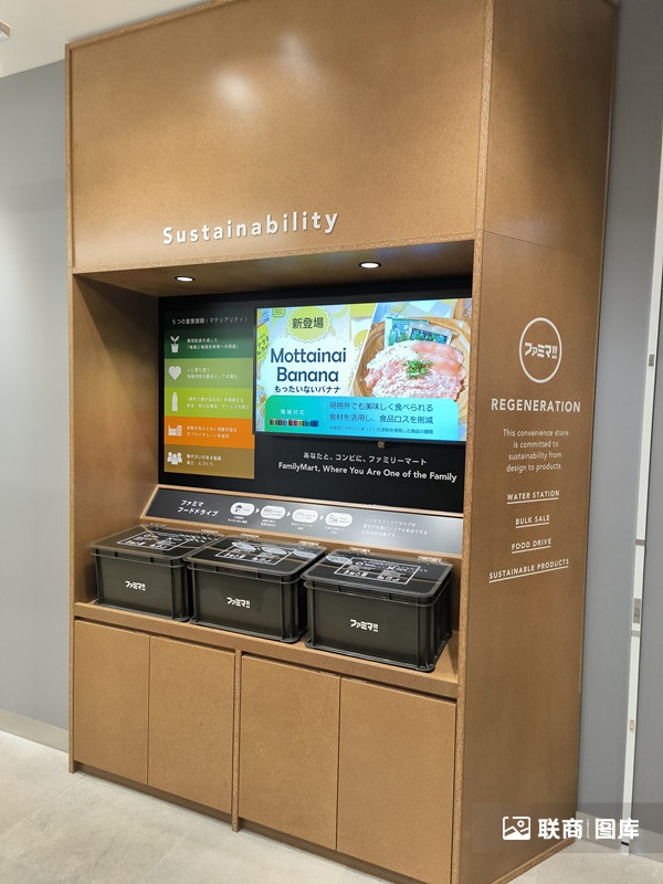 而全家開(kāi)在麻布臺(tái)Hills這個(gè)店的獨(dú)到之處在于,策劃可持續(xù)發(fā)展主題,以再生(REGENERATION)、再考(RETHINK)、再利用(REUSE)三合而一為主題作為定位。