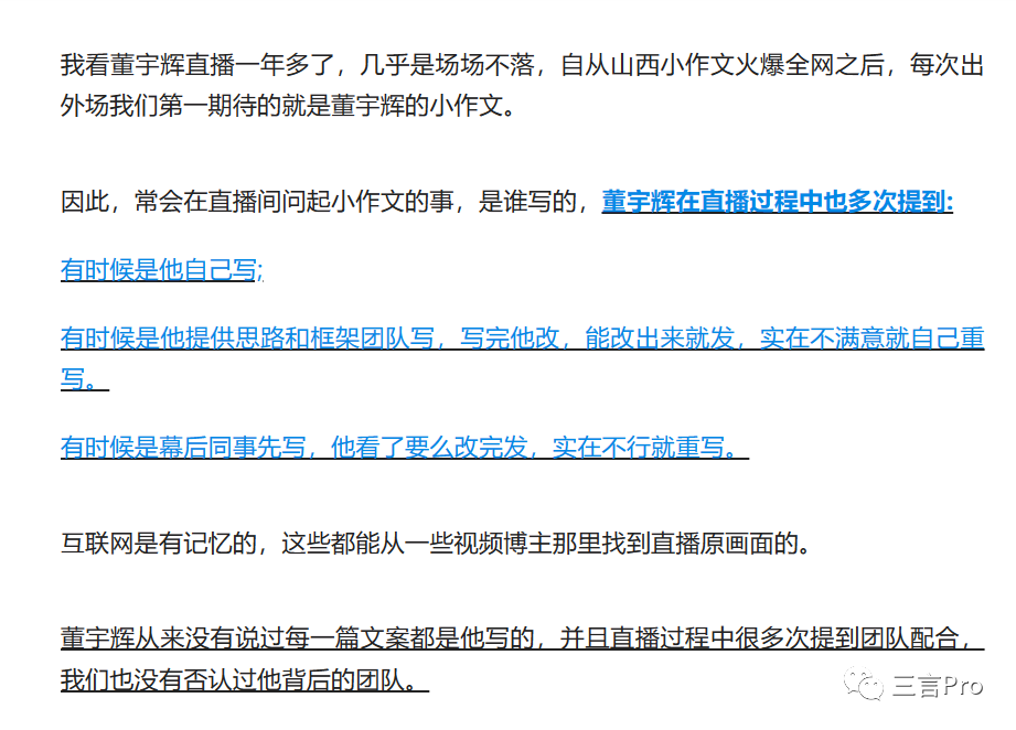 而且,董宇輝從來(lái)沒(méi)有說(shuō)過(guò)每一篇文案都是他寫的。