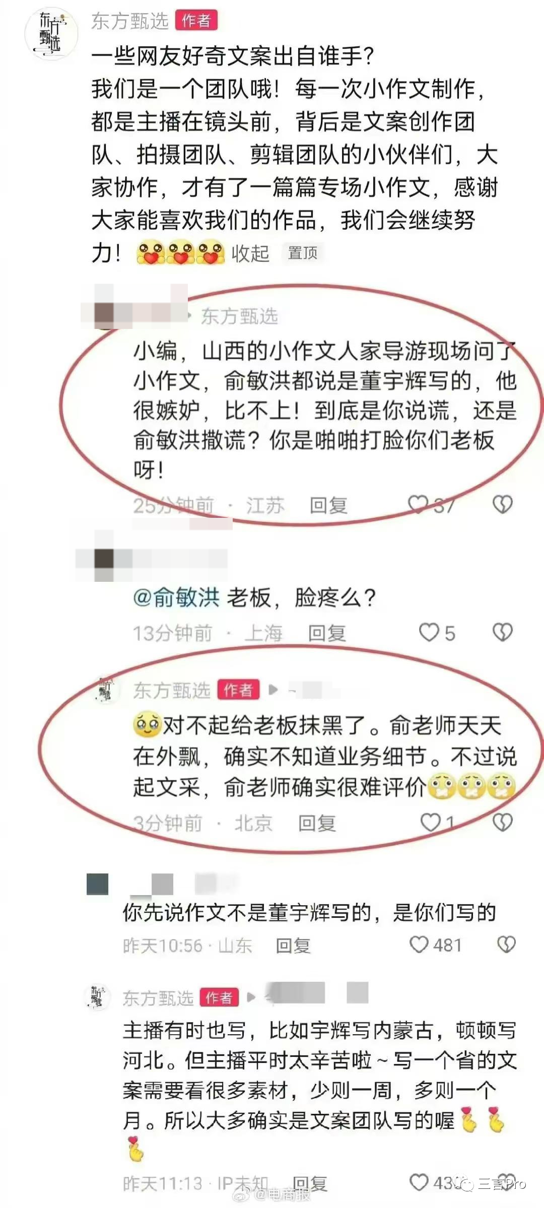 東方甄選的小編則回應(yīng)稱:“對(duì)不起給老板抹黑了。俞老師天天在外飄,確實(shí)不知道業(yè)務(wù)細(xì)節(jié)。不過(guò)說(shuō)起文采,俞老師確實(shí)很難評(píng)價(jià)!