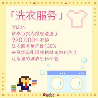 據(jù)銀泰年度會(huì)員服務(wù)成績(jī)單顯示,這一年,有170000人次帶娃逛街時(shí),在銀泰商場(chǎng)的智能母嬰室免費(fèi)使用尿不濕、濕巾等嬰兒用品;商場(chǎng)客服為顧客免費(fèi)包了63510份禮物。這一年,銀泰百貨為顧客清洗了920000件衣物,洗衣服務(wù)量比去年增加三成,讓家里的洗衣機(jī)也多了“休假”機(jī)會(huì);還有145000位顧客在逛商場(chǎng)時(shí),享受了洗車服務(wù)。