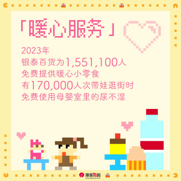 不僅如此,去逛銀泰百貨,如果餓了渴了,商場(chǎng)會(huì)免費(fèi)提供瓶裝礦泉水、糖果、餅干、小面包等暖心小食;同時(shí),商場(chǎng)還陸續(xù)推出了“流動(dòng)暖心服務(wù)”、“特色暖心服務(wù)”,讓逛街體驗(yàn)更舒適、更安心。