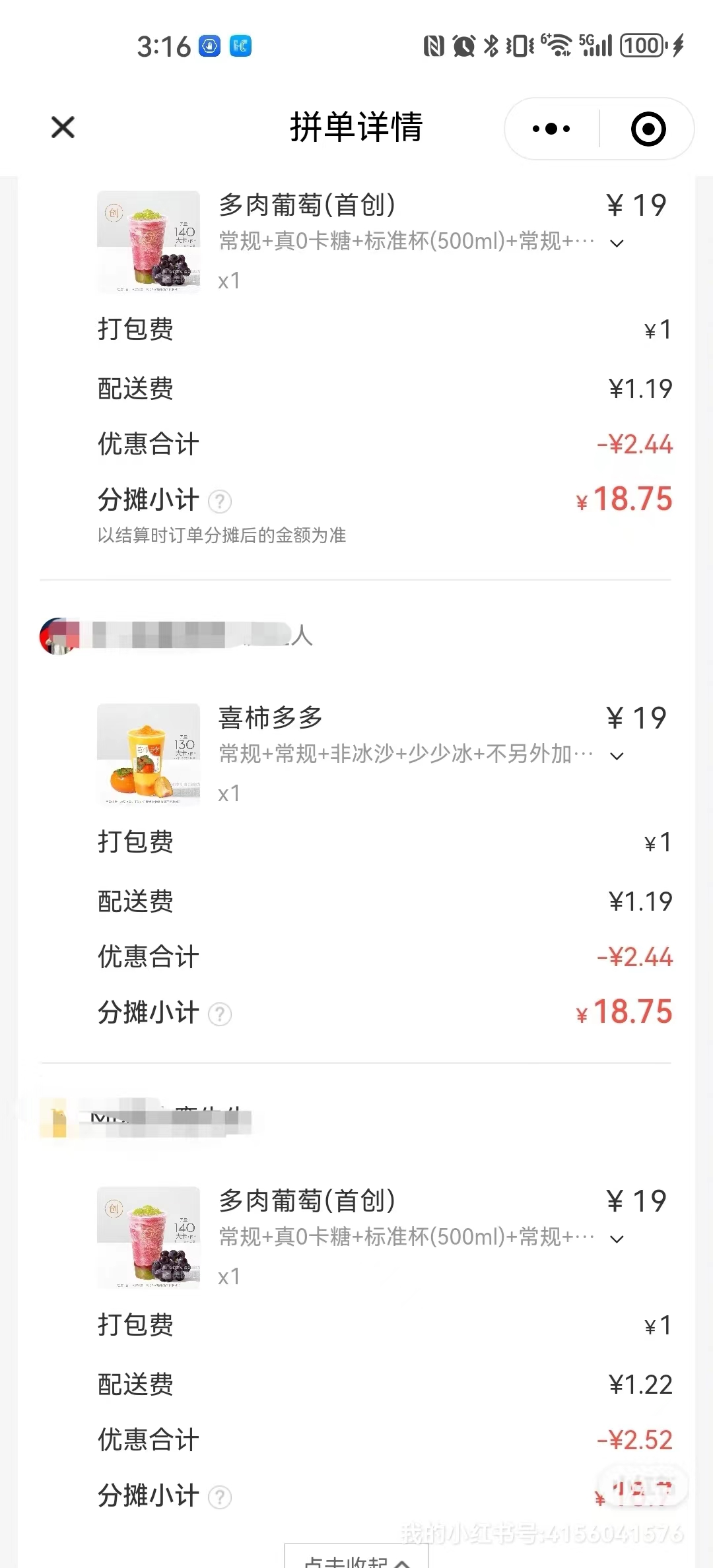 顯然喜茶洞察到了消費者下午茶拼單A錢的這個場景,并且把這個問題通過系統(tǒng)解決了。在喜茶的小程序點單,會自動生成每個人的賬單,一杯奶茶多少錢,A的運費多少錢,優(yōu)惠多少錢,最終到每個人實際應(yīng)該A多少錢,精確到小數(shù)點后兩位(看下圖)。這對于經(jīng)常A下午茶的白領(lǐng)來說太友好了,直接根據(jù)喜茶算的金額價格給訂單付款人即可,不管是訂單發(fā)起人還是拼單人,都不需要操心去算錢,也不用去想到底是給多了還是給少了這種小心思。