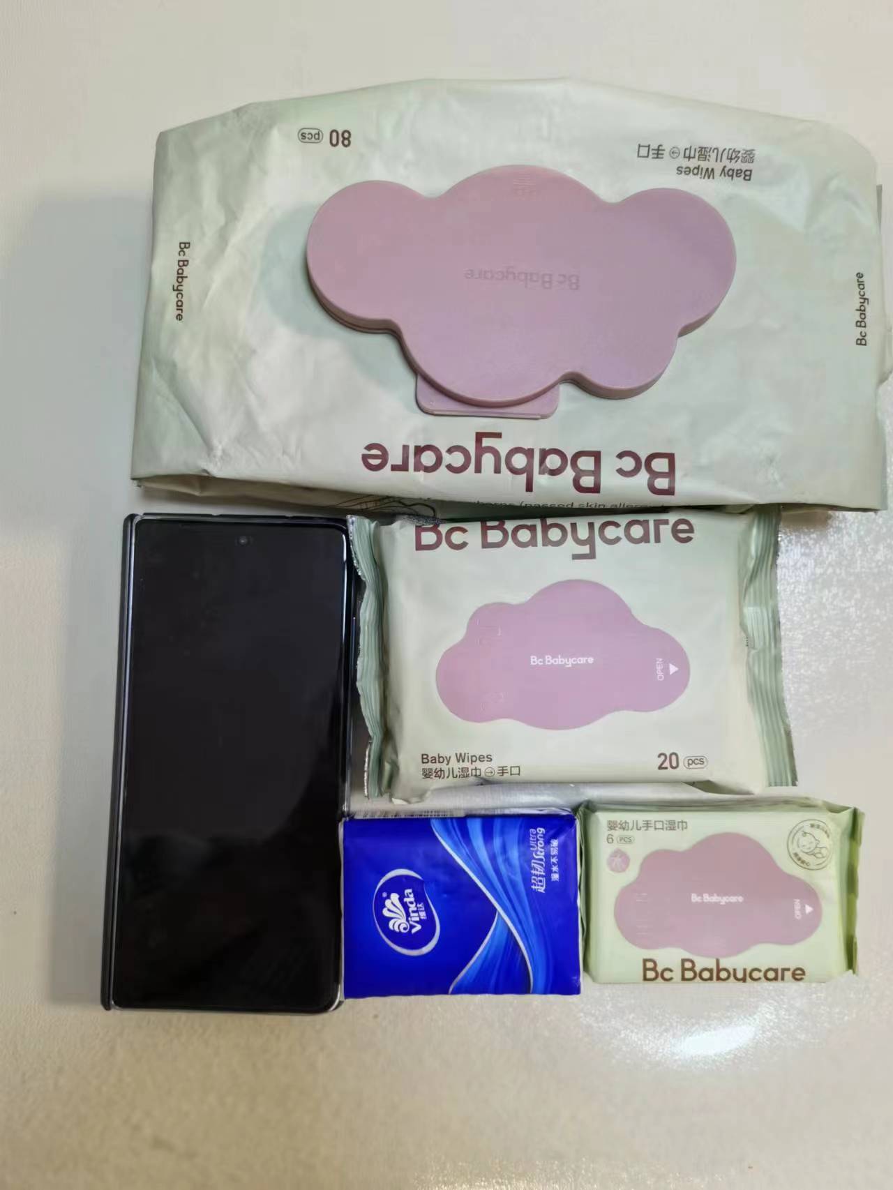 最近我驚喜的發(fā)現(xiàn),它送了一些只有和手帕紙包裝一樣大小的濕巾,每包只有6抽,抽出來以后大小和正裝差不多大。我媽收到了這些手帕紙包裝大小的濕巾,她一直夸說這個小包裝非常方便,她每次帶孩子下樓溜達出門帶一包,吃東西前擦擦手、吃完擦擦嘴、哭得眼淚鼻涕一大把的時候一擦就很干凈,只要衣服有口袋,就可以裝下這個,而且6片裝完全夠簡單下樓玩耍的使用場景,簡直是出門遛娃神器。(各個濕巾的尺寸大小,我放了一個手機做對比)