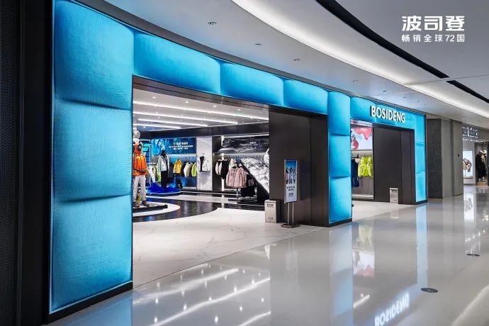 據(jù)悉,該店為波司登全國首家戶外概念店。店鋪占地面積為700㎡,以黑色為主色調(diào),裝飾采用簡(jiǎn)潔流暢的幾何線條和不同肌理的黑色材質(zhì),打造出高級(jí)輕奢的空間氛圍。店面門頭采用全幅LED屏,動(dòng)態(tài)畫面直觀傳達(dá)“羽絨專家”的品牌基因,為消費(fèi)者創(chuàng)造沉浸式購物體驗(yàn)。
