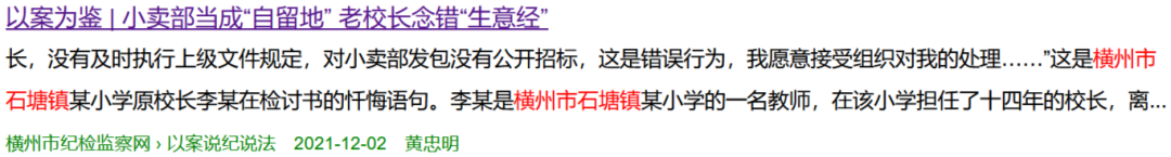 2021年廣西橫州市紀委監(jiān)委網(wǎng)站披露的一則案例顯示,橫州市石塘鎮(zhèn)一所小學(xué)的校長在2006年至2014年間,將學(xué)校小賣部以每年8000元的價格承包給其妻子經(jīng)營,租金遠低于同類小學(xué)小賣部。