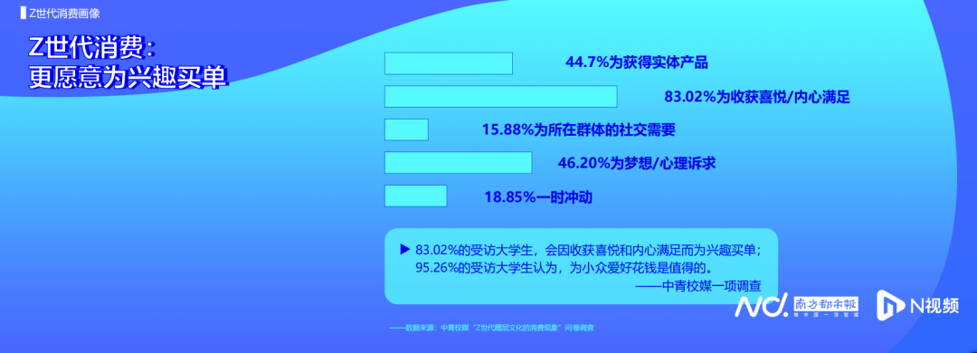 中青校媒一項調(diào)查顯示,83.02%的受訪大學(xué)生會因收獲喜悅和內(nèi)心滿足而為興趣買單,95.26%的受訪大學(xué)生認為,為小眾愛好花錢是值得的。