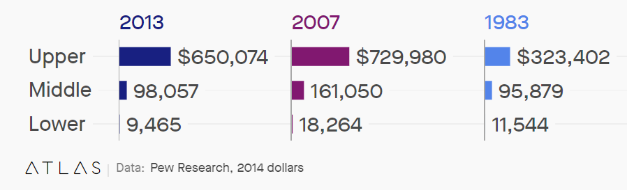 下沉市場是塊金餑餑,在美國,它還有很高的挖掘價值。過去幾年,在“中產(chǎn)階級縮水,美國人越來越窮”的背景下,美國的幾個1元店品牌混的如魚得水。Pew Research的數(shù)據(jù)顯示,從1971年到2015年,美國中等收入者所占總收入份額從61%降至50%。1983年,富人的財富是中等收入家庭的3倍,到2013年,這一數(shù)字變成了7倍。而根據(jù)人口普查局的數(shù)據(jù),到2021年底,至少有3800萬美國人生活在貧困中,這一數(shù)字占總人口的11.6%。