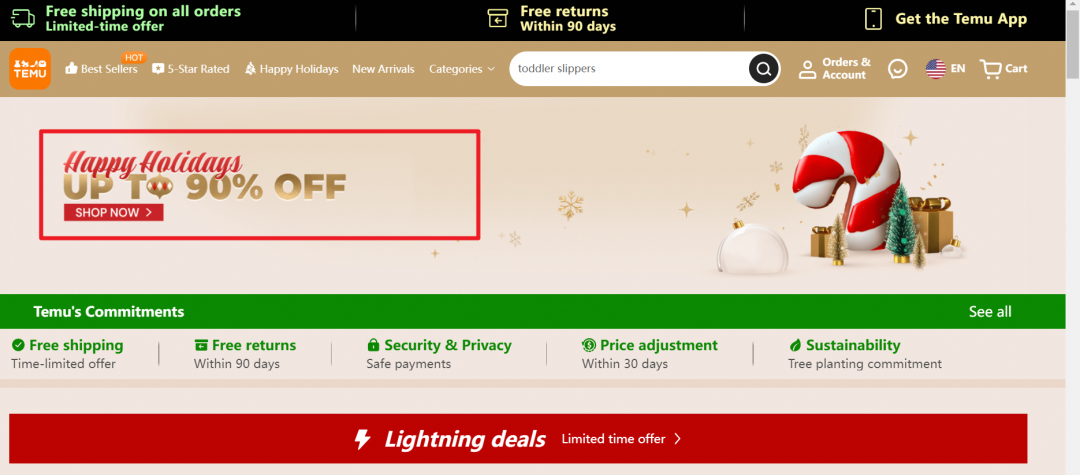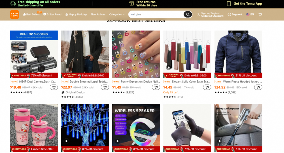 黑五期間,Temu直接給出了90% off的折扣