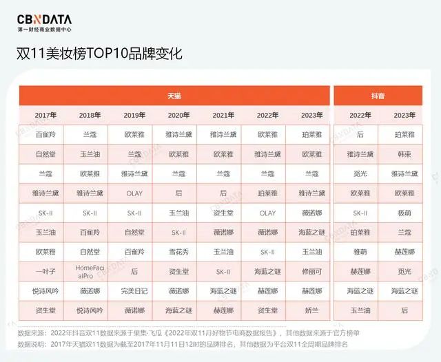 從2023年市場表現(xiàn)來看,國貨美妝品牌要優(yōu)于外資品牌。特別是從今年雙11可以看出,珀萊雅拔得多平臺美妝國貨頭籌,首次坐上天貓、抖音美妝行業(yè)頭把交椅。同樣,薇諾娜連續(xù)入圍TOP10,名次穩(wěn)中有升。