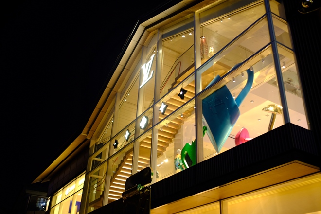 LV前不久集中進(jìn)行了一波旅行主題的廣告活動(dòng),包括用標(biāo)志性的藍(lán)色刷滿蘇州河畔的一座紅磚瓦房的一整面墻;以及用巨大的3D品牌logo氣球,點(diǎn)綴杭州銀泰的圍擋——都是以非常直白且高調(diào)的形式進(jìn)入大眾視線。