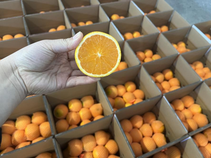 億畝千甜負(fù)責(zé)人望運(yùn)香介紹,“九月紅”初成熟時(shí)果皮是青綠色的,果肉呈現(xiàn)出橙紅色,且極其細(xì)嫩、水分充足。“外表稍顯青澀,實(shí)則內(nèi)心火熱。12月中旬‘九月紅’橙果實(shí)成熟度更高,口感優(yōu)異,正值最佳賞味期。”本來(lái)生活水果買手推薦道。