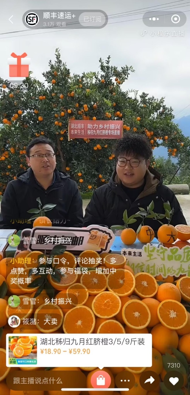 10萬(wàn)+用戶在“順豐速運(yùn)”微信小程序參與直播,訂單從全國(guó)各地紛至沓來(lái)。屈原吟誦的“秭歸名片”成為這個(gè)寒冬里消費(fèi)者期待的一份清甜。