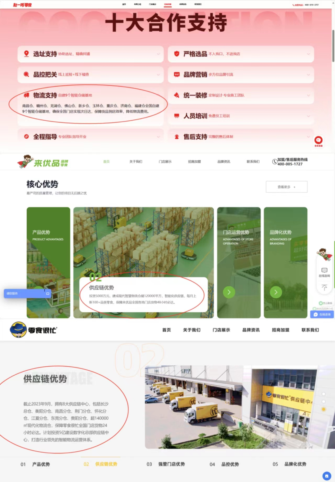 在上述兩家量販零食品牌外,目前只要是能叫得上名的量販零食品牌,在他們各自官網(wǎng)加盟頁(yè)面中,我們都能看到公司在供應(yīng)鏈與數(shù)字化環(huán)節(jié)中所獲取的成就,而這也成為了加盟商快速增長(zhǎng)的最大底氣。