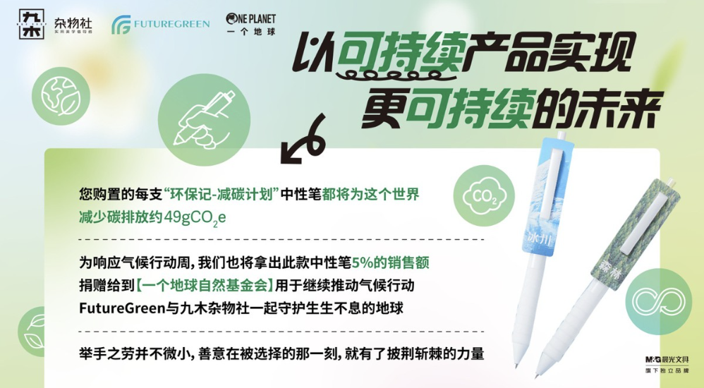 未來,九木雜物社將持續(xù)和晨光文具一起踐行可持續(xù)理念—一筆開啟綠色生活,倡導(dǎo)更多年輕消費者從生活中的小事做起,踐行可持續(xù)理念,共創(chuàng)美好未來。