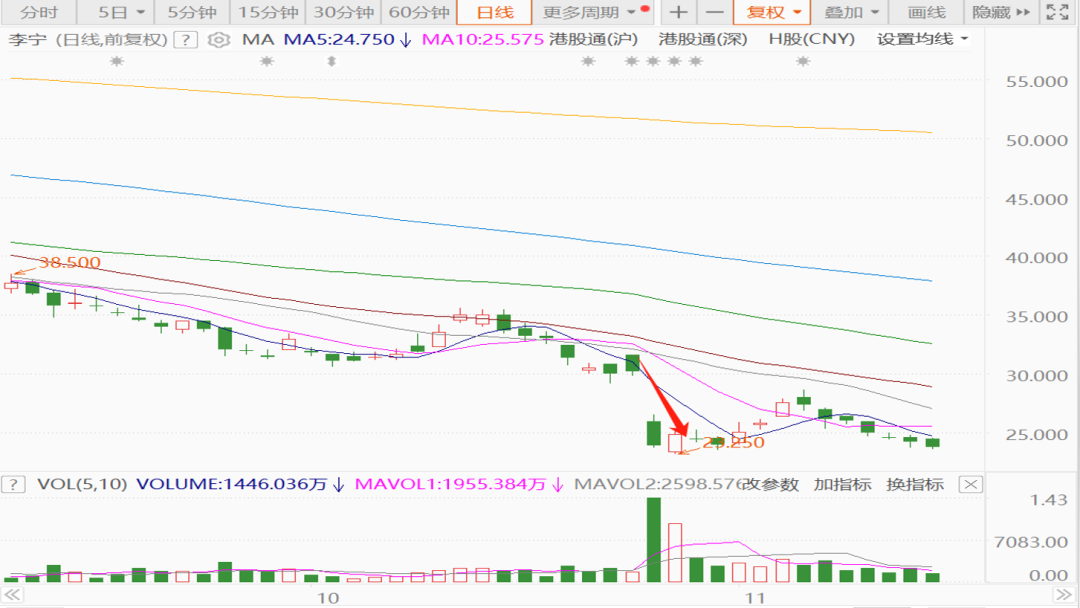 一份零售流水增速不及預期的經(jīng)營公告讓李寧股價單日大跌近20%。