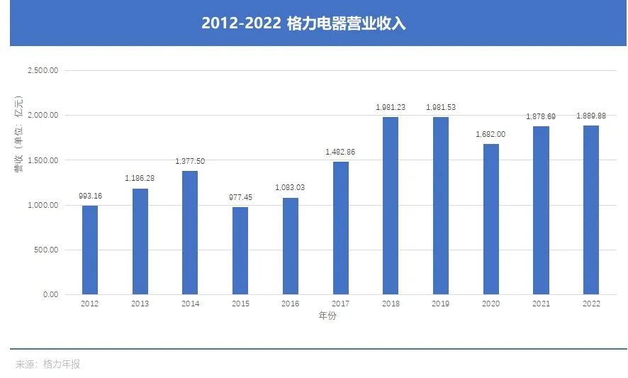 2022年,格力營收為1890億元,同比增長0.6%。“月滿則虧,水滿則溢”,格力的發(fā)展軌跡似乎在印證這個道理。在今年世界500強名單中,格力與第500強企業(yè)營收相差350億元,遺憾落榜。