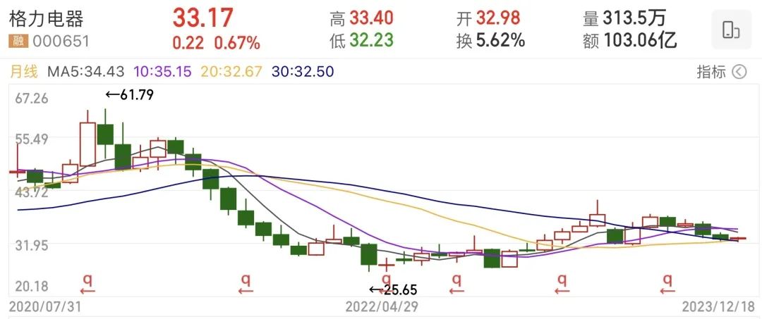 這并非沒有征兆,自2020年12月以來,格力股價持續(xù)下挫,目前每股大約為33.14元,較高點已經跌去約45%,市值蒸發(fā)近2000億元。