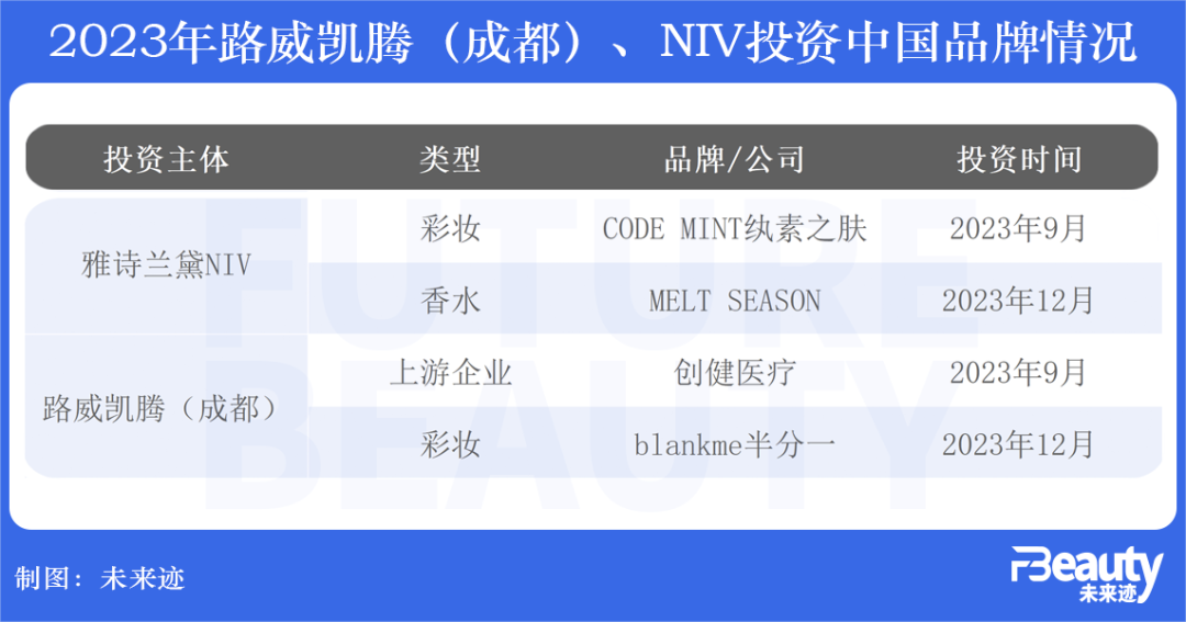 值得注意的是,路威凱騰對(duì)blankme半分一的投資、NIV對(duì)melt season的投資,都是在短時(shí)間內(nèi)的第二次在中國(guó)進(jìn)行的投資。