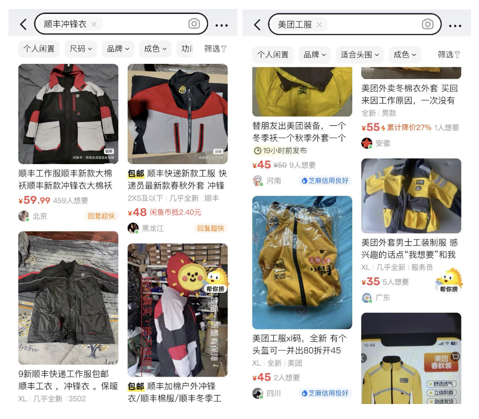 如果覺(jué)得順豐、美團(tuán)穿出去太高調(diào),又或者覺(jué)得這些功能還不夠硬核,別擔(dān)心,多個(gè)廠牌、多樣款式、多種功能,二手市場(chǎng)應(yīng)有盡有。