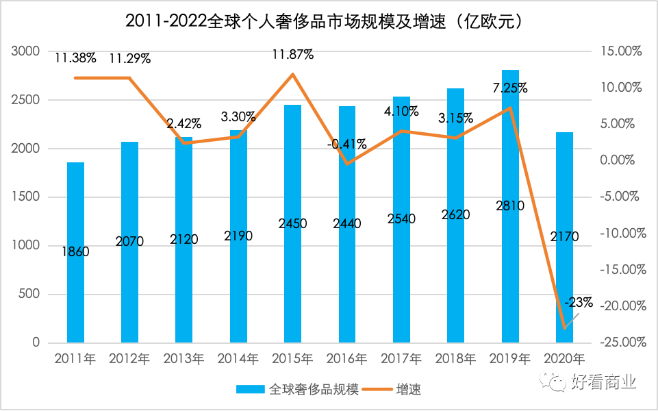 對于全球奢侈品行業(yè)而言,2011—2020年是增速不斷放緩的十年。