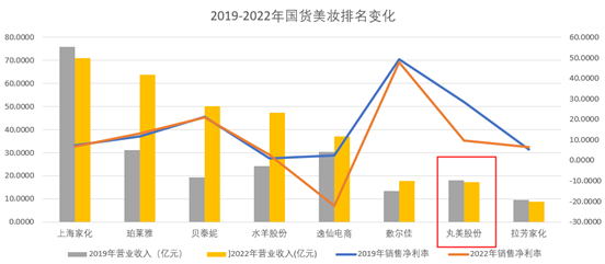 圖:2019-2022年國貨美妝排名變化,來源:上市公司財報