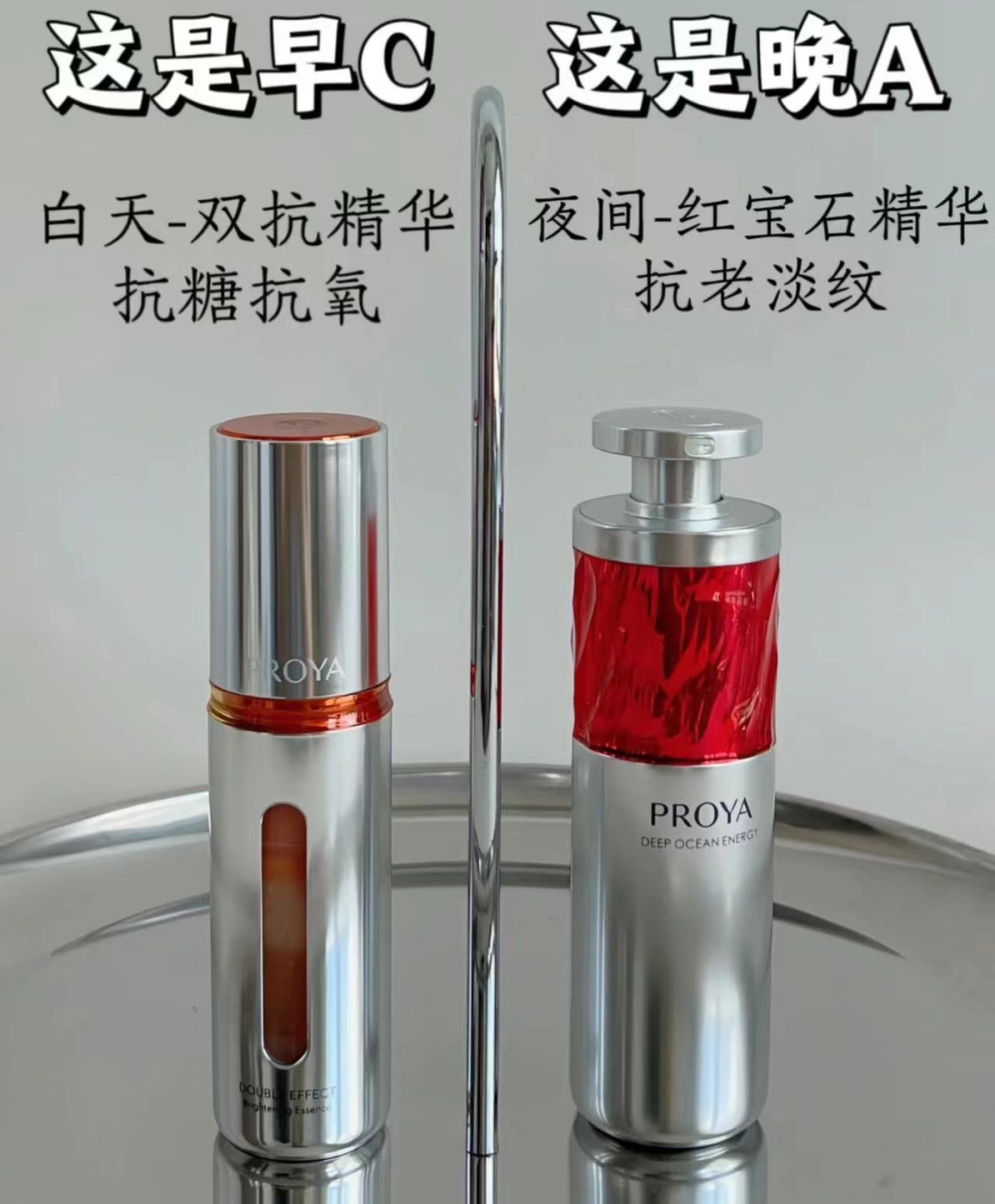 另一方面,珀萊雅的“大單品”策略讓其迅速獲得消費(fèi)認(rèn)知。在一系列抗老、抗糖、抗氧品牌中,珀萊雅相較國際大品牌具有極高的性價(jià)比。其雙抗精華和紅寶石精華組合在一起的“早C晚A”套組,成為珀萊雅出圈的名片。