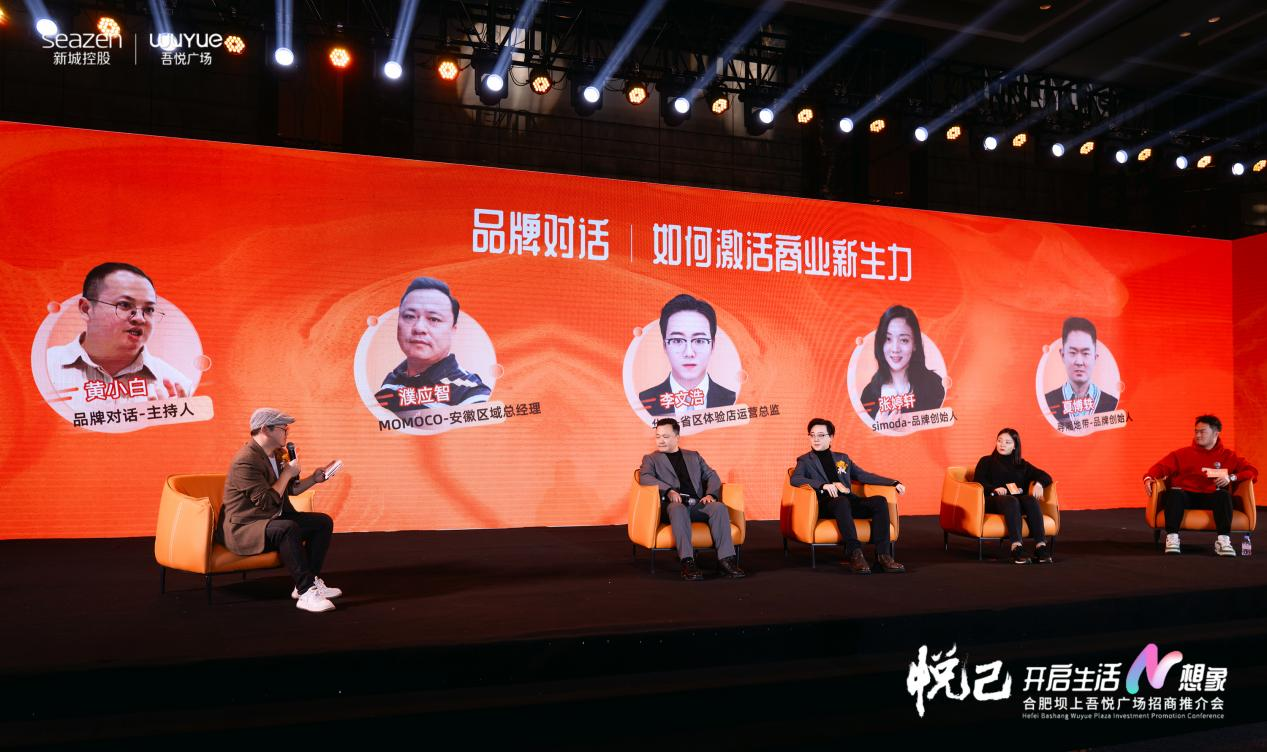 在主題演講后,盒馬鮮生合肥區(qū)域總經(jīng)理冷智勇通過(guò)各自分享盒馬品牌運(yùn)營(yíng)理念,毒評(píng)DUPING主理人黃小白和momoco 安徽區(qū)域總經(jīng)理濮應(yīng)智、華為安徽區(qū)域體驗(yàn)店運(yùn)營(yíng)總監(jiān)李文浩、四摩達(dá)品牌創(chuàng)始人張婷軒、尋湘地帶品牌創(chuàng)始人夏博軼就如何激活商業(yè)新生力展開探討。