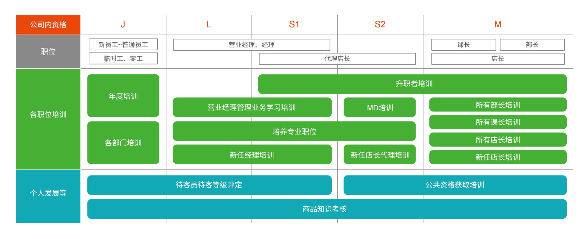 丸悅擁有完整的職工培養(yǎng)體系,也稱“丸悅職業(yè)支援體制”。從新入職員工或零工,到部長或店長,每個階段都有專屬的培訓(xùn)內(nèi)容,當(dāng)然也逃不過相應(yīng)的考核,其中貫穿始終的便是“商品知識考核”。
