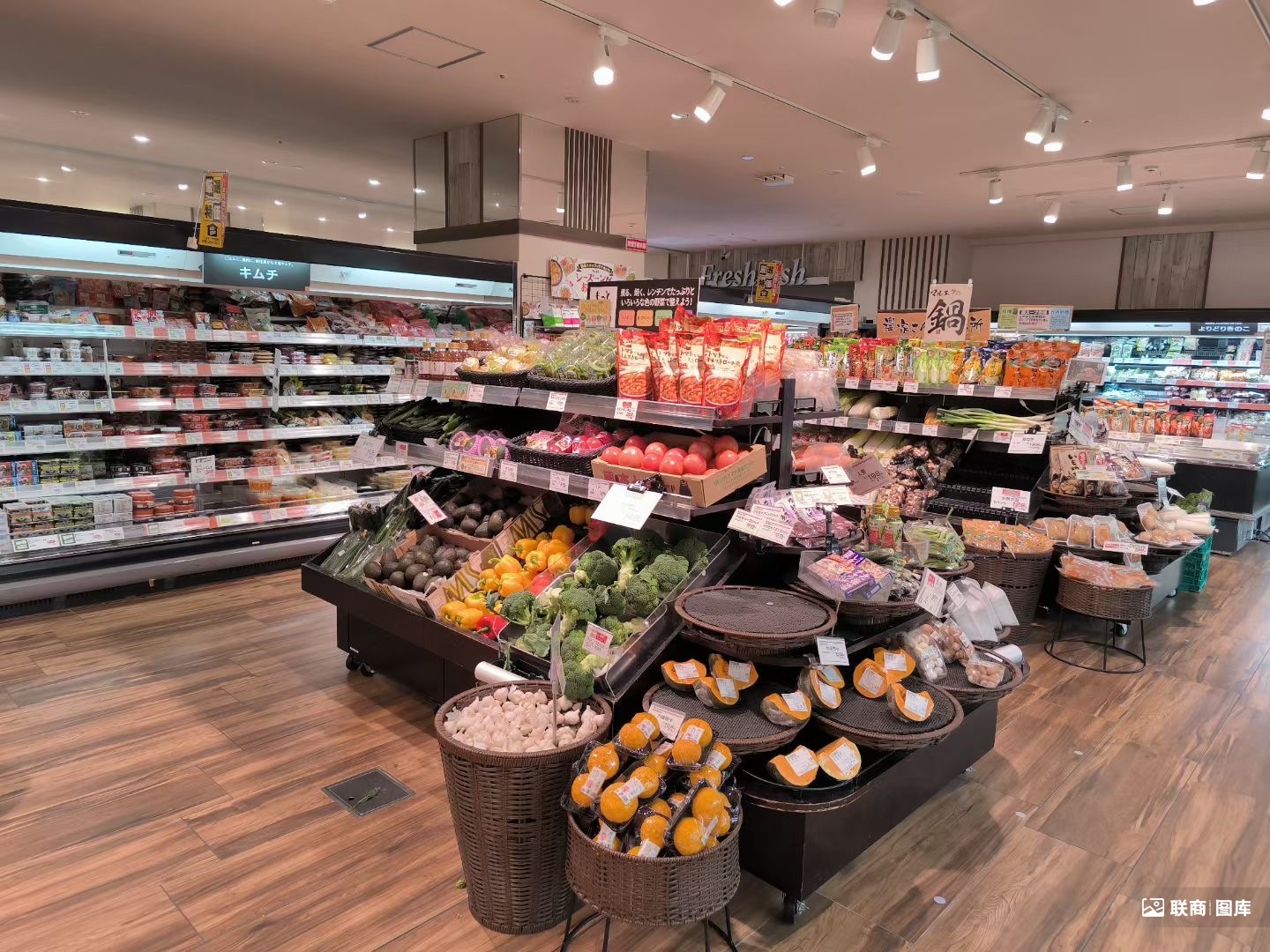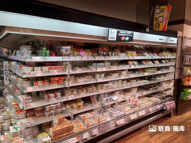 從門店布局來看(見文末的超市圖片展示),“食”之味也一覽無余。入口處旁側(cè)一般設(shè)有一小塊“鮮花售賣區(qū)”,色彩鮮艷,而非一堆單調(diào)的綠植。然后,便是新鮮蔬果區(qū),散稱或分切的商品較為松散的擺在特色陳列架之上,四周靠墻便展示著盒裝蔬果和豆制品,全部都整整齊齊、干干凈凈地擺在冷藏柜之中。