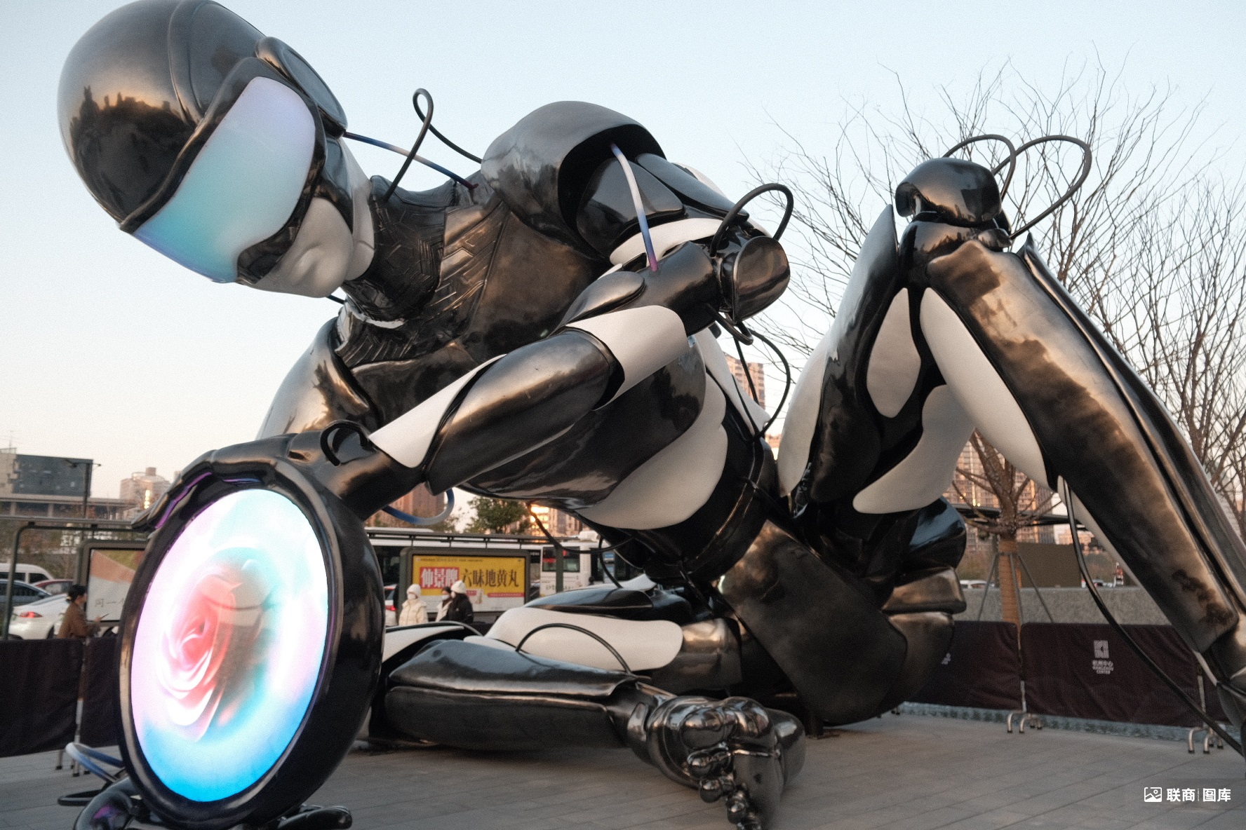 展覽東路主入口前近10米的機器人特羅斯交互藝術(shù)裝置,幾乎每個人都會駐足拍照;