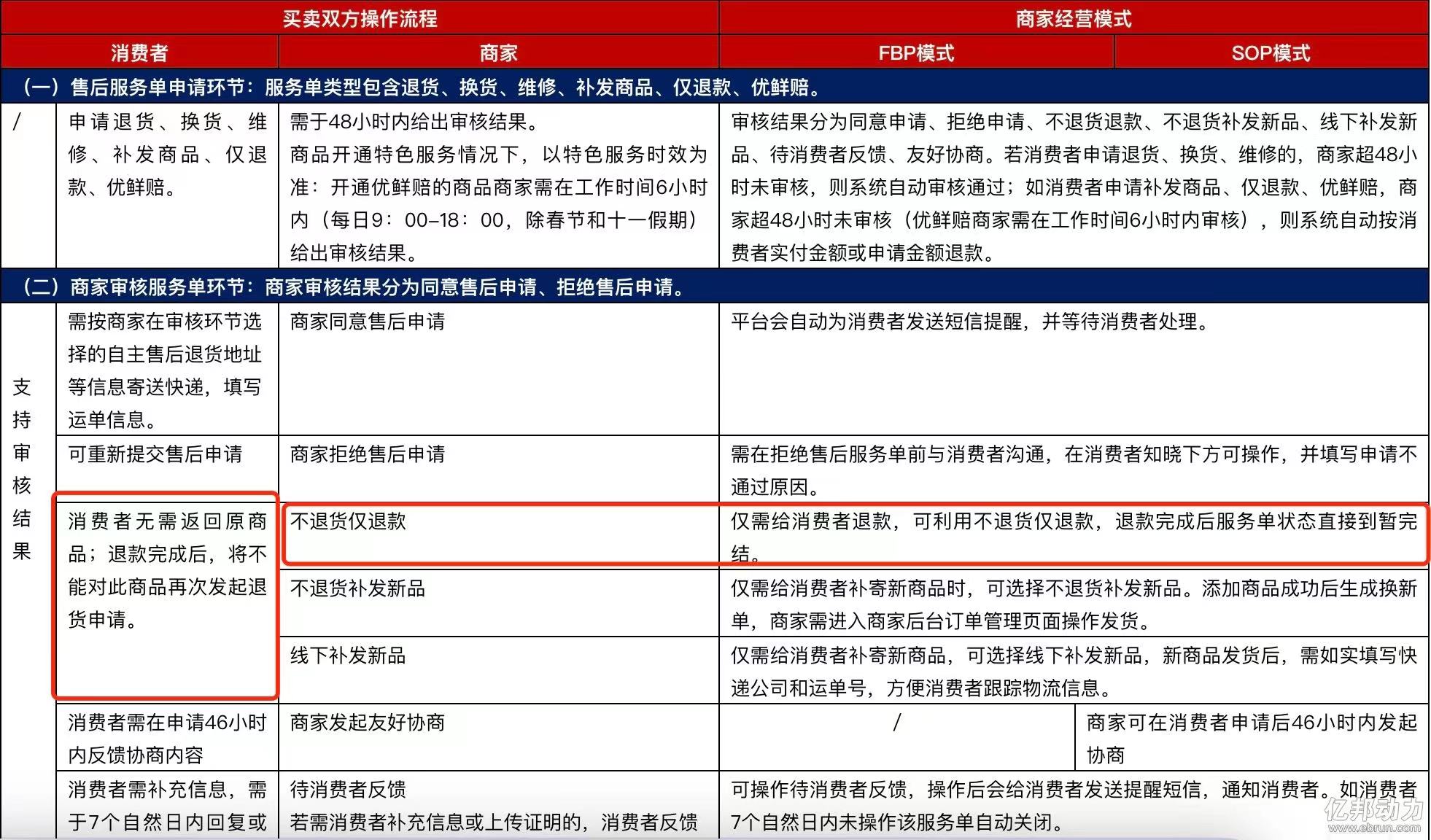 京東的規(guī)則變動(dòng)在于:消費(fèi)者在自主售后處理流程中無需返還原商品,而商家則可以通過“不退貨僅退款”為消費(fèi)者辦理退款。一日退款完成,服務(wù)單狀態(tài)將直接進(jìn)入暫完結(jié)狀態(tài),避免了進(jìn)一步的退貨流程。