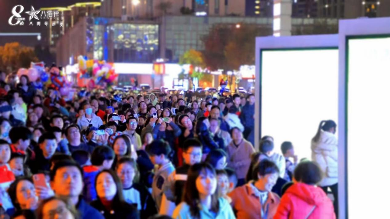 你見過成千上萬人一起歡呼的場面嗎?數(shù)百架無人機一同升空,在如墨的夜空中變幻出“宜興八佰伴8周年慶”、“一起嗨8”等字幕和奧特曼動畫,將宜興八佰伴八周年慶典的氣氛推向高潮。宜興市民可以從城區(qū)不同方向欣賞到這場夜空中的奇幻燈光秀,重溫童年的熱血與感動。