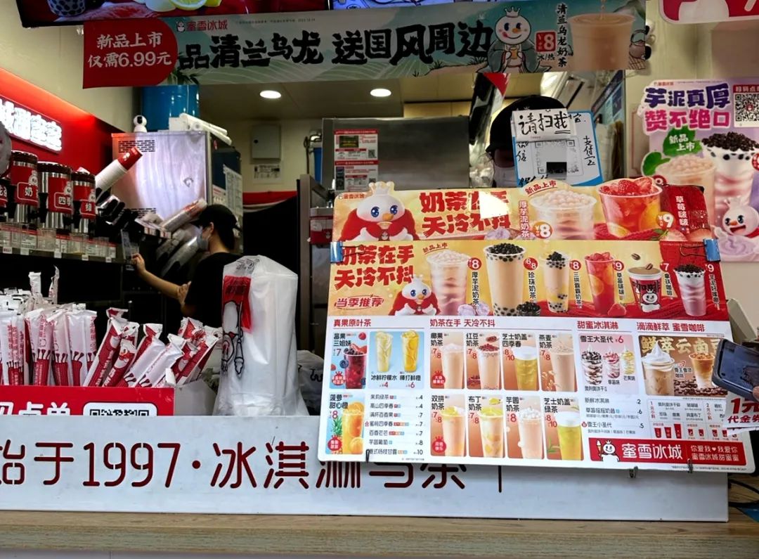 當(dāng)時,風(fēng)頭正盛的是“1點點奶茶”,后者門店干凈整潔,出餐服務(wù)標(biāo)準(zhǔn)化,還提供少糖、少冰等選項。張紅超發(fā)現(xiàn),有些開在1點點隔壁的蜜雪冰城營業(yè)額只有對方的十分之一。