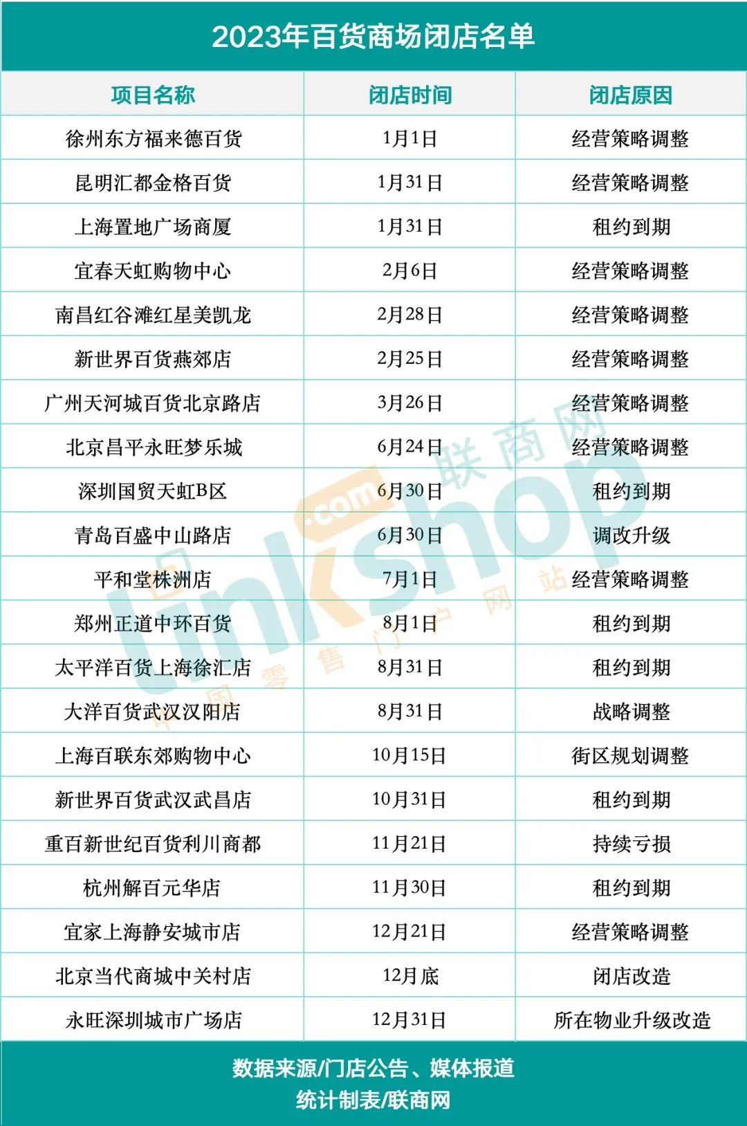 附:2023年傳統(tǒng)百貨商場(chǎng)閉店名單