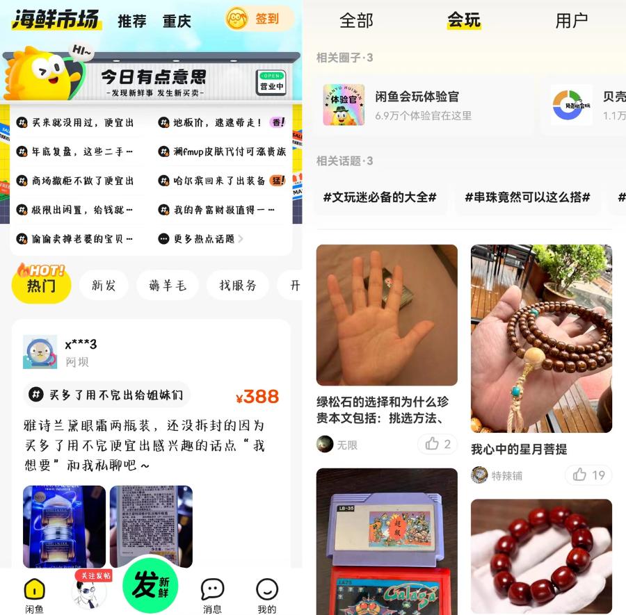 圖:閑魚“海鮮市場”、“會玩”社區(qū)