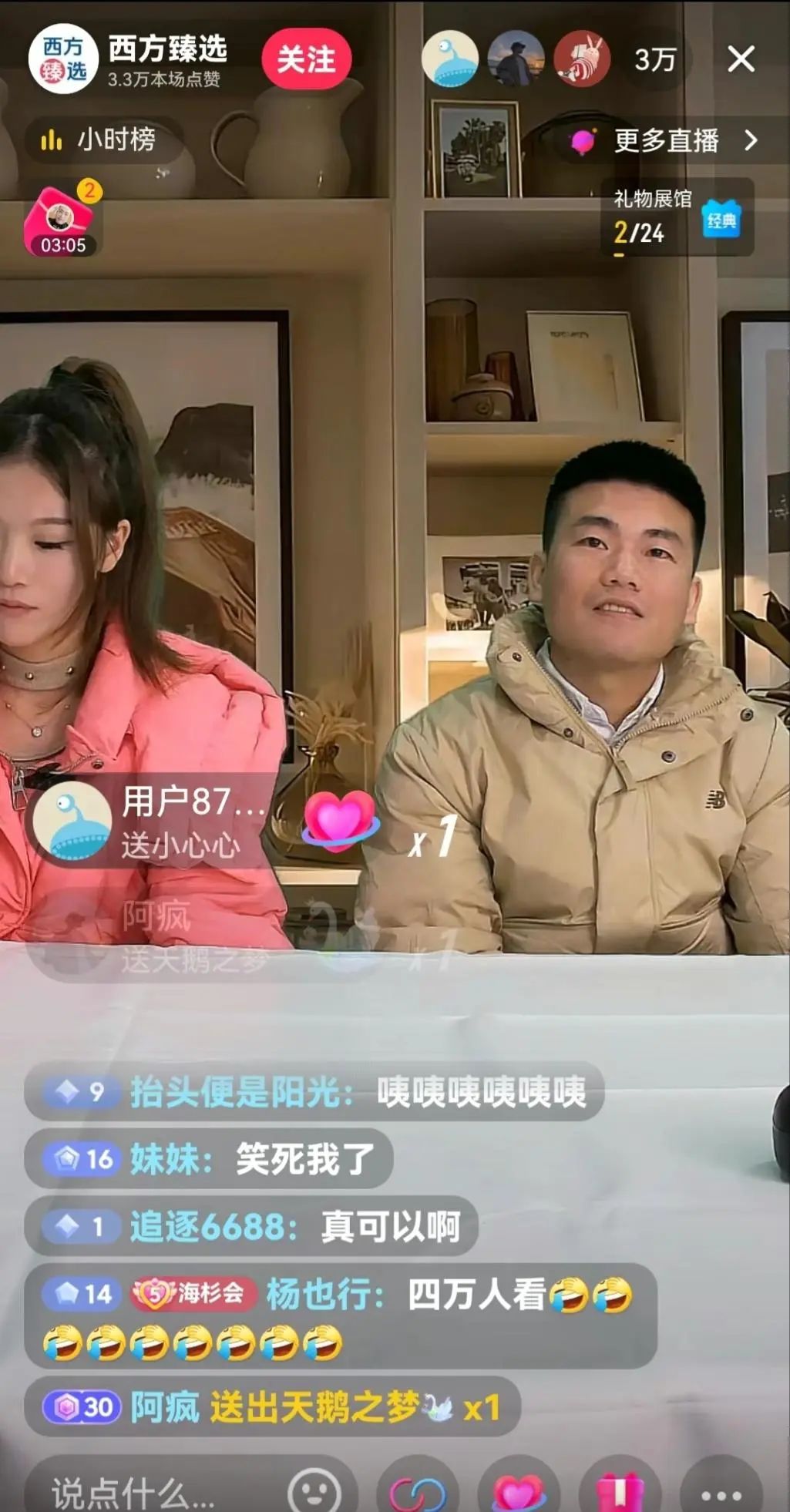 這個(gè)賬號(hào)的視頻中,長相與董宇輝神似的男子講著“我去西方臻選直播間啦”,吸引了不少網(wǎng)友涌入直播間,調(diào)侃“這是董雪輝嗎”“這應(yīng)該是無語輝吧”。這場直播在線人數(shù)達(dá)到了4萬,觀看量接近100萬。