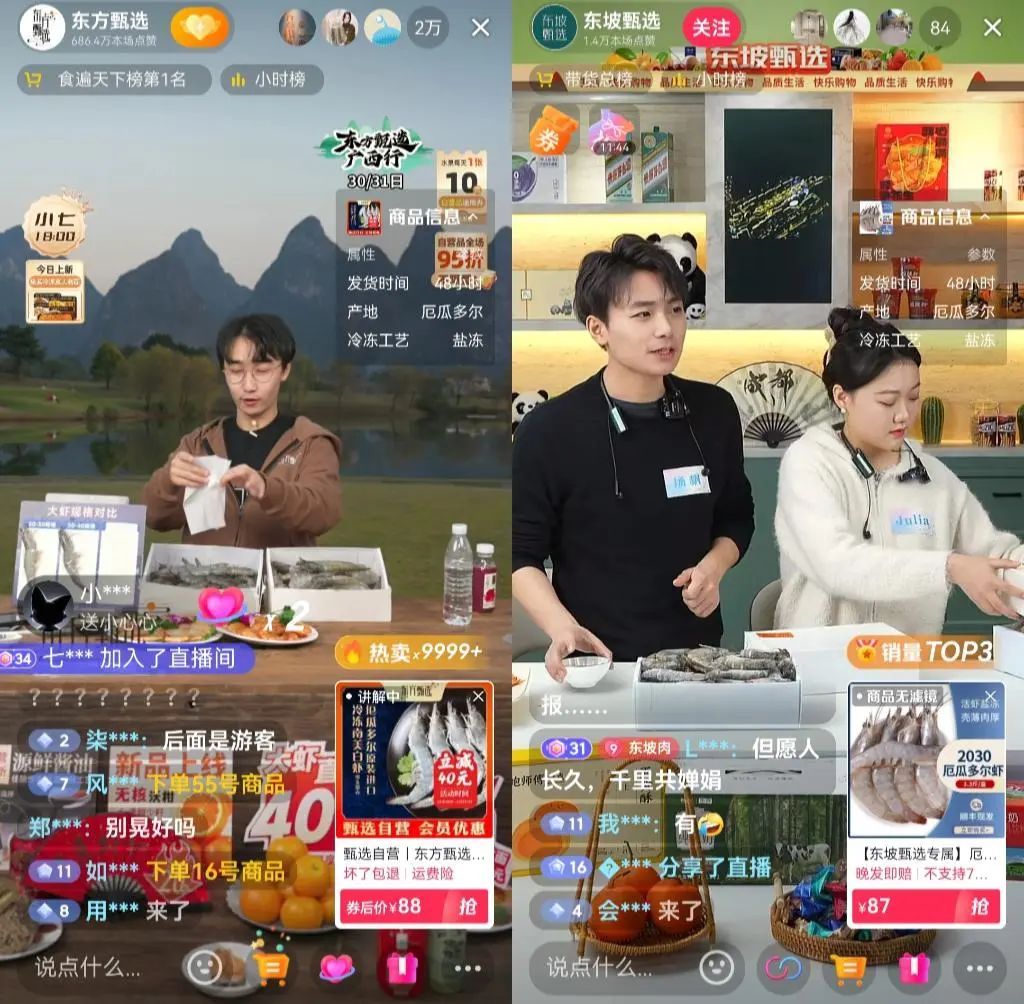 東方甄選與東坡甄選,在售賣相似商品