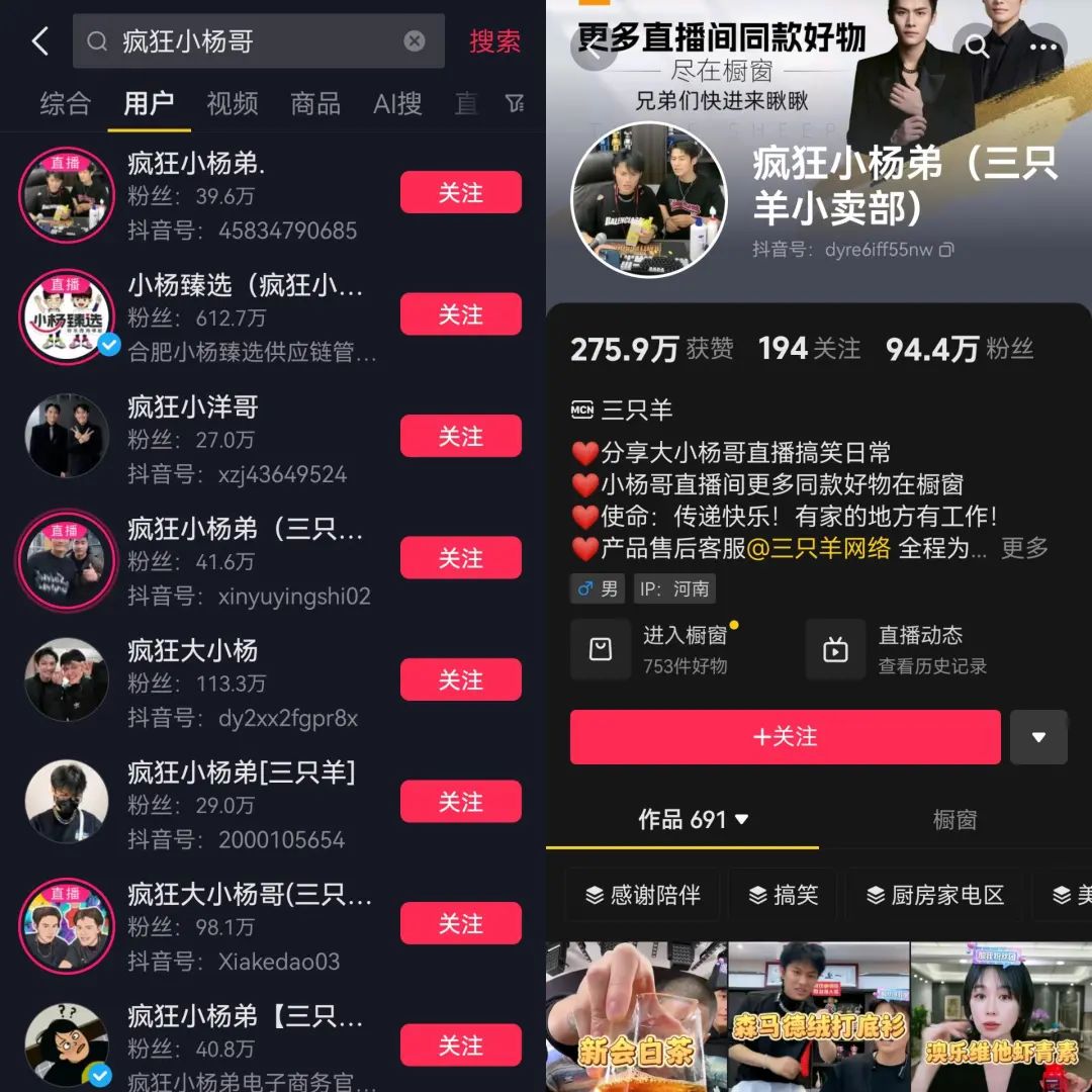 暴躁小鵬哥與瘋狂小楊哥的直播間對(duì)比