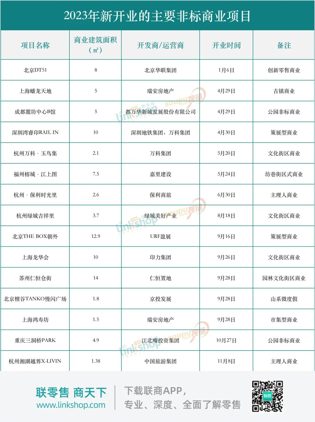 《聯(lián)商網(wǎng)》統(tǒng)計(jì)了今年前11個(gè)月新開的非標(biāo)商業(yè)項(xiàng)目顯示,今年全國(guó)至少開出了15個(gè)非標(biāo)商業(yè),涵蓋了公園非標(biāo)商業(yè)、主理人商業(yè)、文化街區(qū)商業(yè)、策展型商業(yè)、古鎮(zhèn)商業(yè)、市集型商業(yè)、山系微度假型商業(yè)以及創(chuàng)新零售型商業(yè)等形式。