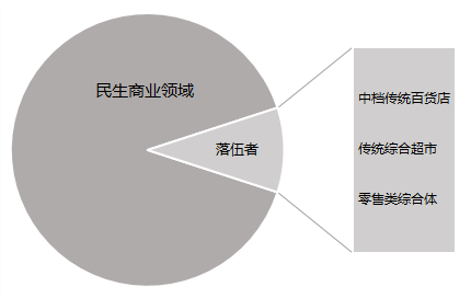 隨著消費(fèi)轉(zhuǎn)型,部分業(yè)態(tài)店鋪生存模式被拋棄、替代,基本退出民生領(lǐng)域的有:中檔傳統(tǒng)體制百貨店,有的店長期虧損,只差發(fā)布關(guān)閉通知;傳統(tǒng)布局綜合超市,比如家樂福;部分傳統(tǒng)零售為主的商業(yè)綜合體,包括盒式和商街。