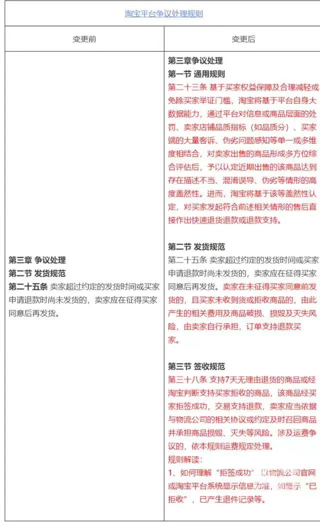 淘寶官方網(wǎng)站于12月25日發(fā)布了變更淘寶平臺爭議處理規(guī)則的公示通知,擬變更淘寶平臺爭議處理規(guī)則的相關規(guī)則。具體規(guī)則含基于平臺大數(shù)據(jù),對相關售后做出快速退款或退貨退款等。