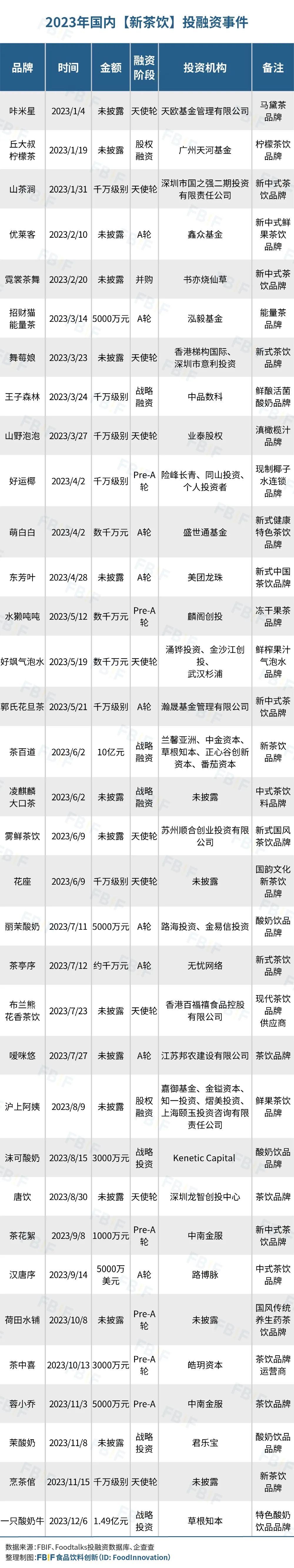 2023年,新茶飲依然備受資本追捧,仍然是食品行業(yè)投融資里最受歡迎的品類之一。