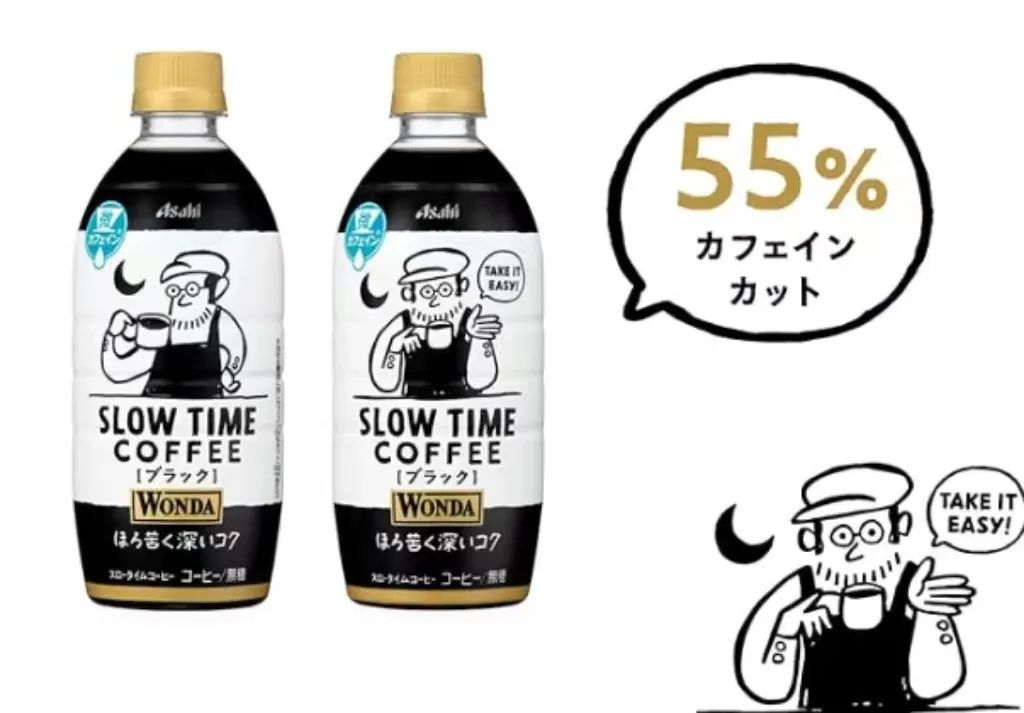 10月,朝日旗下RTD咖啡品牌WONDA推出的黑咖啡產(chǎn)品SLOW TIME COFFEE,采用了“城市烘焙法”(中度偏深的烘焙度),不僅將產(chǎn)品的咖啡因含量降低至比品牌其它咖啡產(chǎn)品低55%的水平,同時保留了咖啡風味,不至于出現(xiàn)低因咖啡的咖啡味淡的問題。