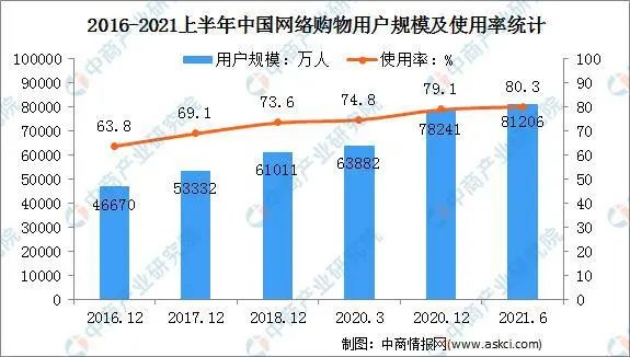 中國互聯(lián)網(wǎng)絡(luò)信息中心數(shù)據(jù)顯示,截至2023年6月,我國網(wǎng)絡(luò)購物用戶規(guī)模達(dá)8.84億,占網(wǎng)民整體的82.0%。